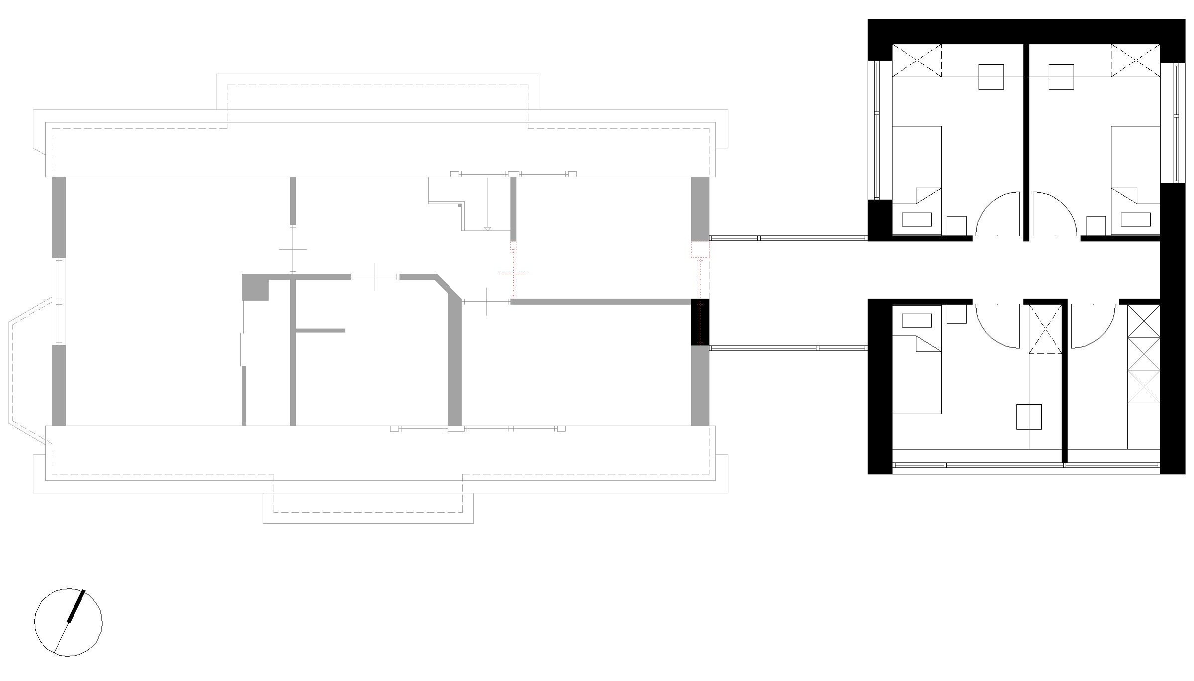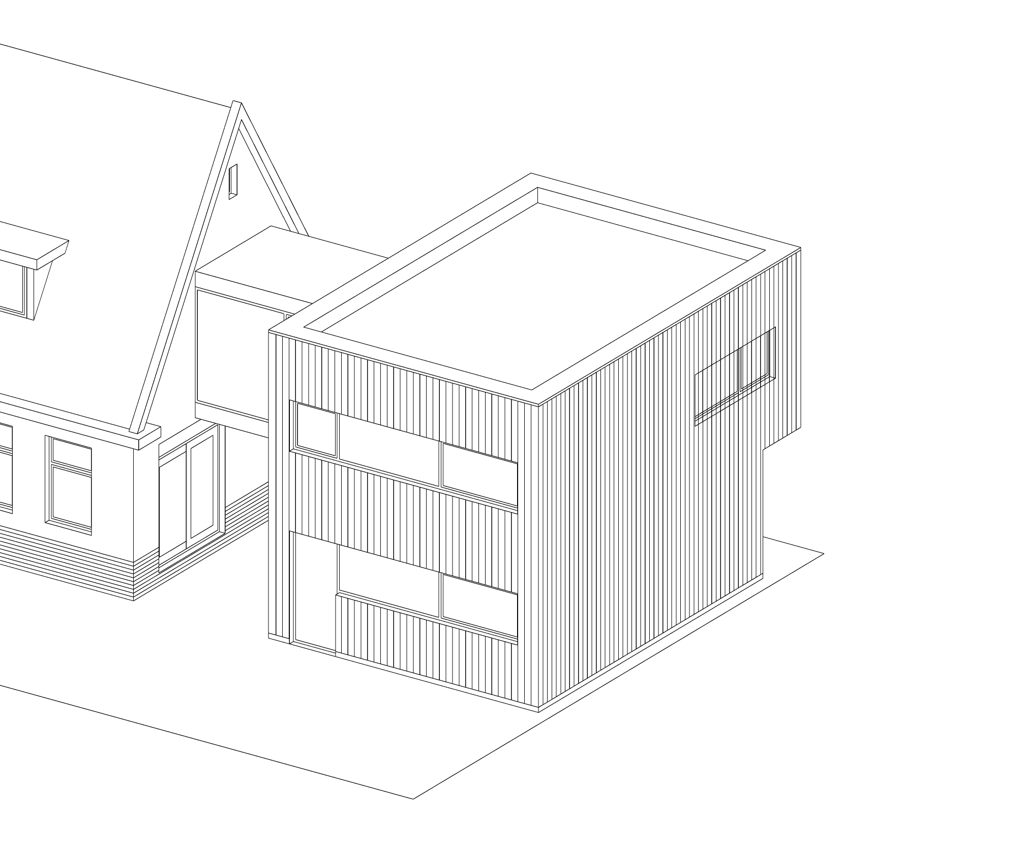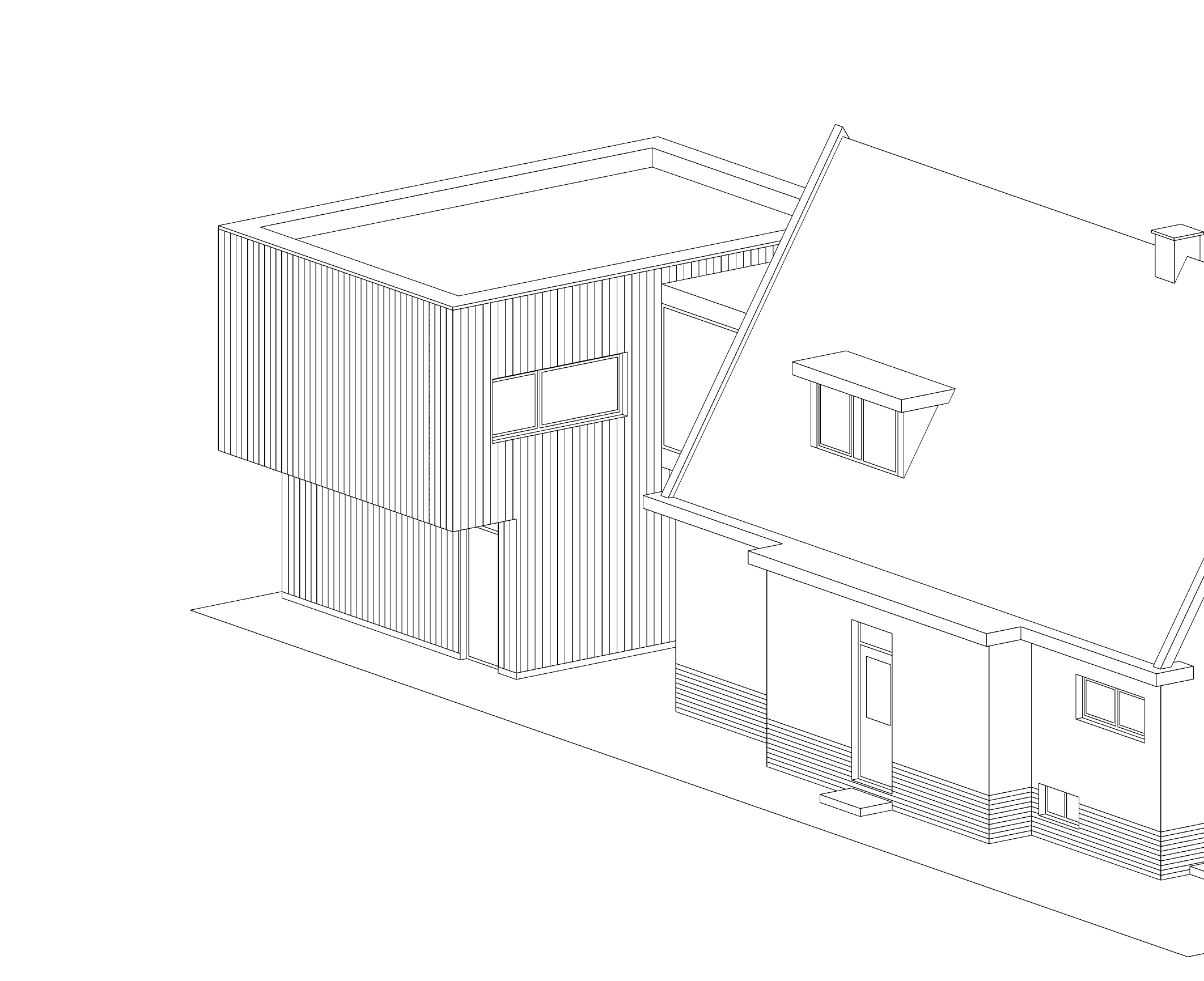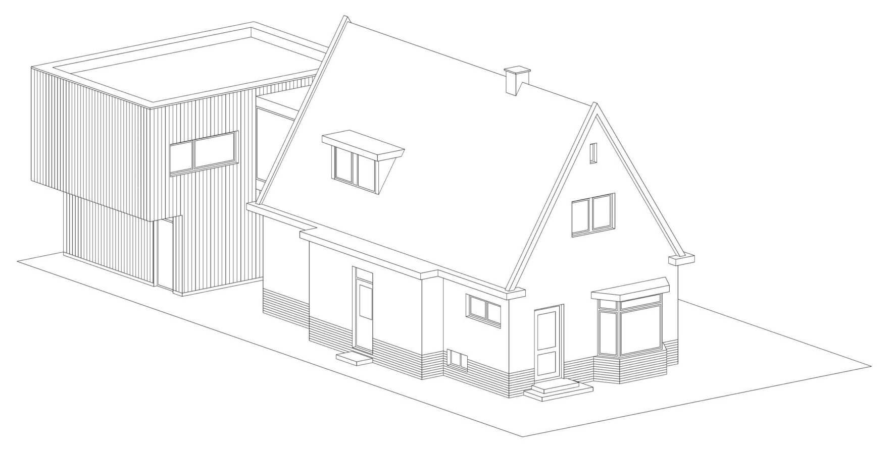 Klientom zależało na powiększeniu przestrzeni życiowej o trzy wygodne sypialnie i obszerne pomieszczenie gospodarcze na rowery i narzędzia.