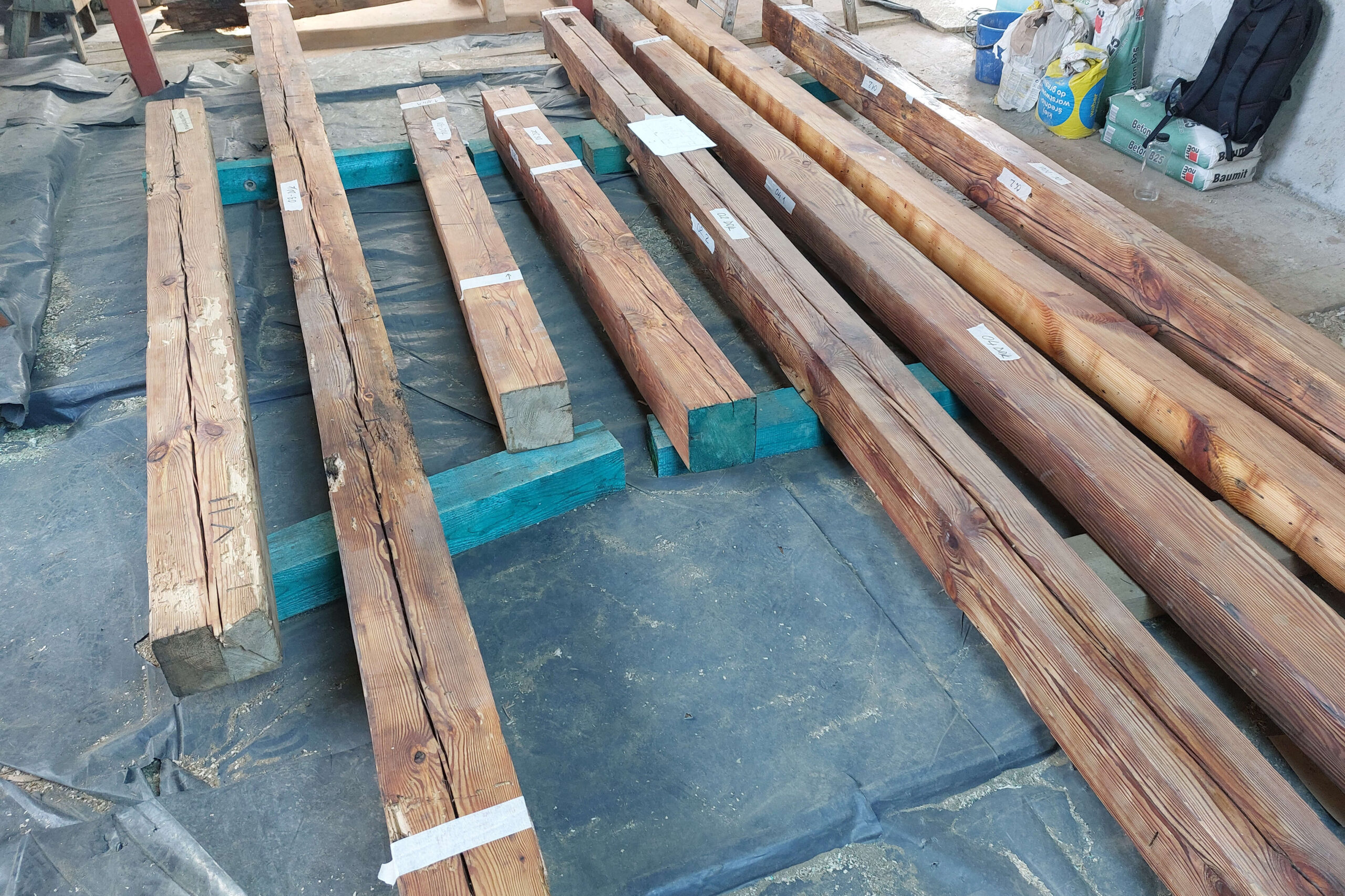 Część elementów, zgodnie z planem, udało się odratować i wykorzystać. Zachowane oryginalne zdrowe belki zostały wyselekcjonowane i ponownie zainstalowane jako ruszt sufitu w przyszłej głównej sypialni (będą one pełnić rolę montażową dla sufitu podwieszanego oraz rolę dekoracyjną). Na dachach lukarn zainstalowano ok. 600 sztuk starej dachówki, której wzór jest obecnie nie do zdobycia. Oryginalna dachówka po przebraniu i oczyszczeniu, mimo wątpliwości Naszych i Inspektora, bardzo dobrze prezentuje się wraz z nową dachówką ceramiczną, którą pokryte zostały główne połacie dachu. Również dawne oryginalne drzwi wewnętrzne i opaski drzwiowe zostały zeskładowane, aby Inwestor mógł je wykorzystać w przyszłości.