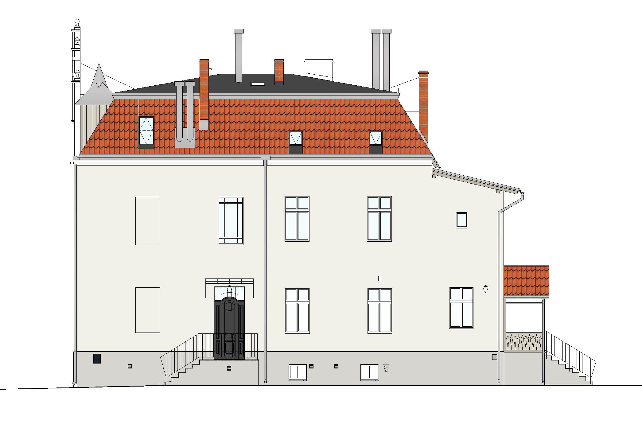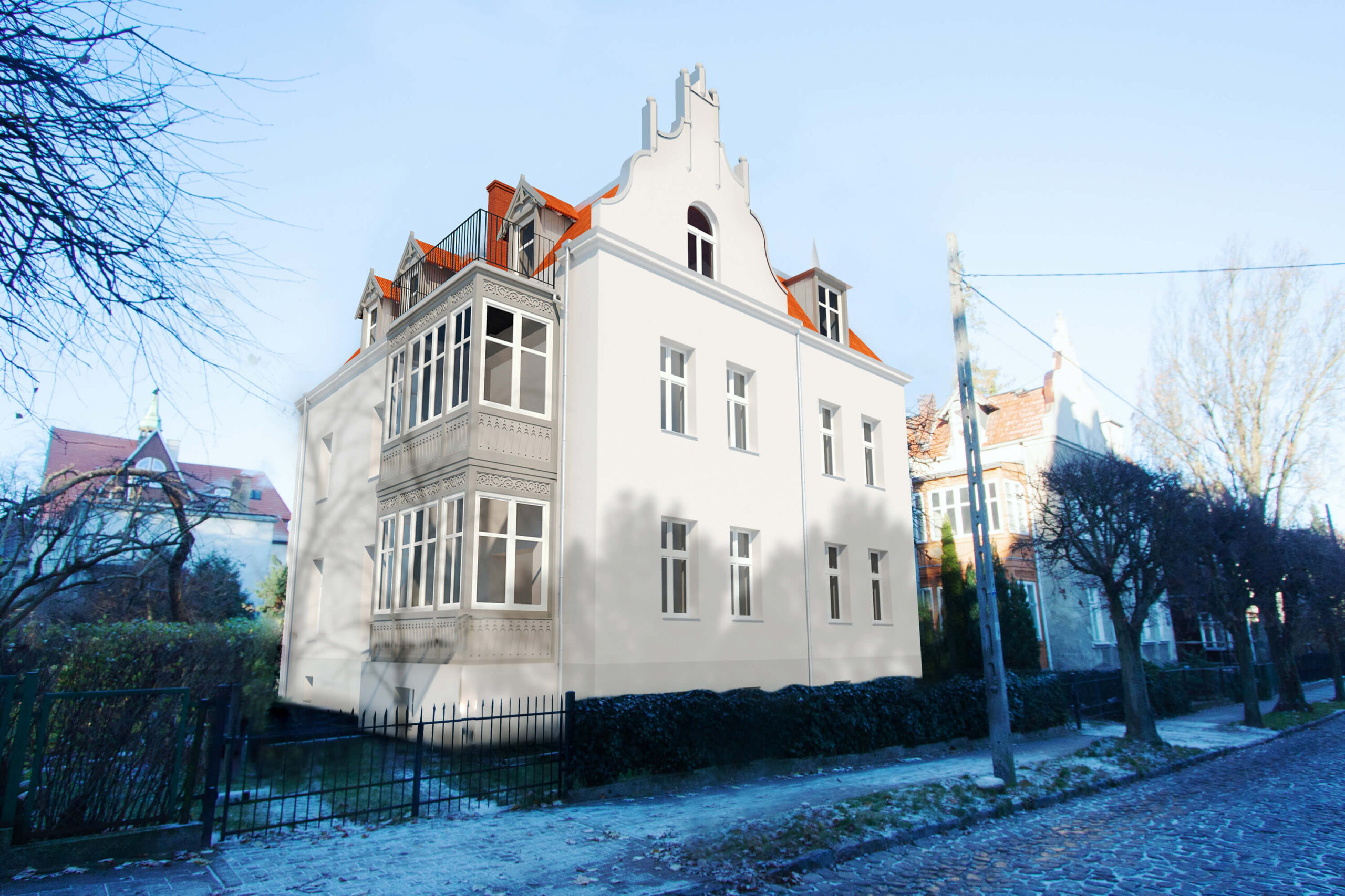Celem projektu była kompleksowa renowacja budynku, obejmująca m.in. remont elewacji i dachu, zabezpieczenie budynku przed wilgocią gruntową oraz ponowne opracowanie wystroju głównego wejścia. Szczególną uwagę poświęcono drewnianej, dwukondygnacyjnej werandzie z tarasem na dachu. Ponieważ część elementów nie była oryginalna, a część oryginalnej substancji była spróchniała i zdeformowana, podjęto decyzję projektową o jej demontażu i odbudowie z wykorzystaniem dobrze zachowanych oryginalnych elementów i odtworzeniu zniszczonych dekoracji i stolarki. Projekt wprowadza nową jasną kolorystykę elewacji oraz klatki schodowej. Ziarnisty tynk cementowy wykonany po wojnie zostanie zastąpiony gładszym tynkiem renowacyjnym. W strefie cokołowej zewnętrzne parapety zostaną wymienione na granit płomieniowany, który zostanie również zastosowany na zewnętrznych schodach do budynku. Nad głównym wejściem zaprojektowano metalowo-szklane zadaszenie. Projekt był konsultowany i został zaakceptowany przez Wojewódzki Urząd Ochrony Zabytków.