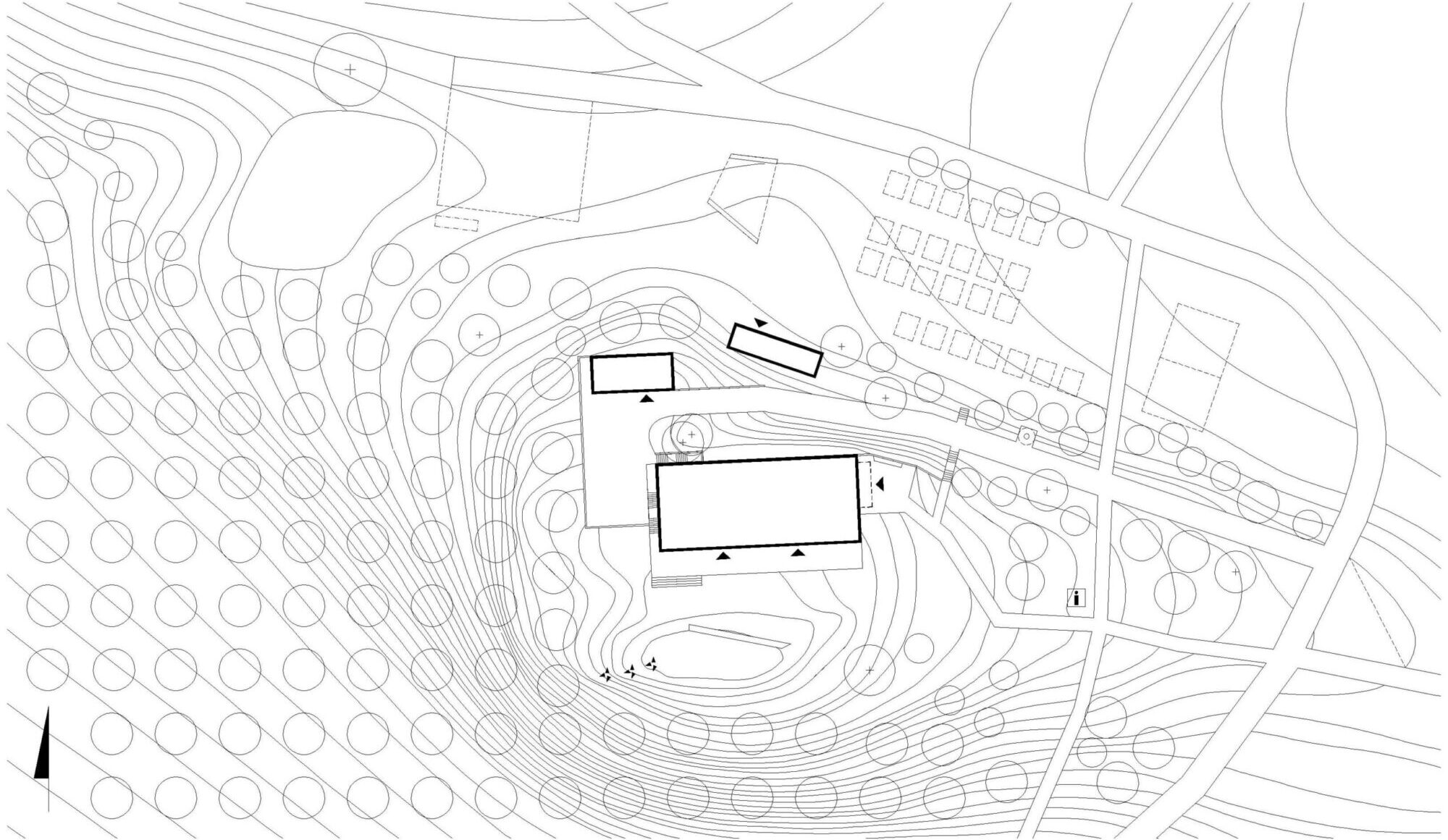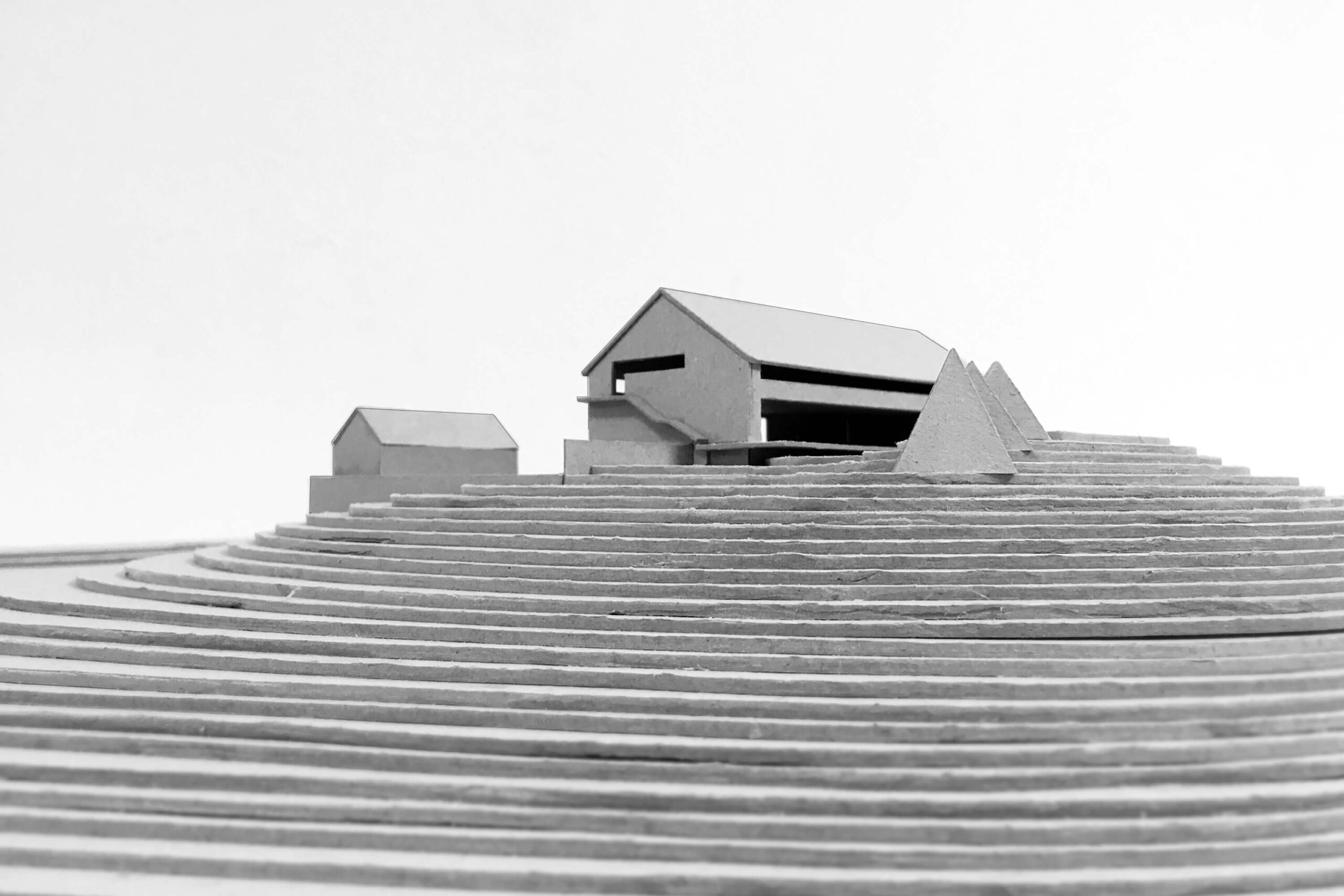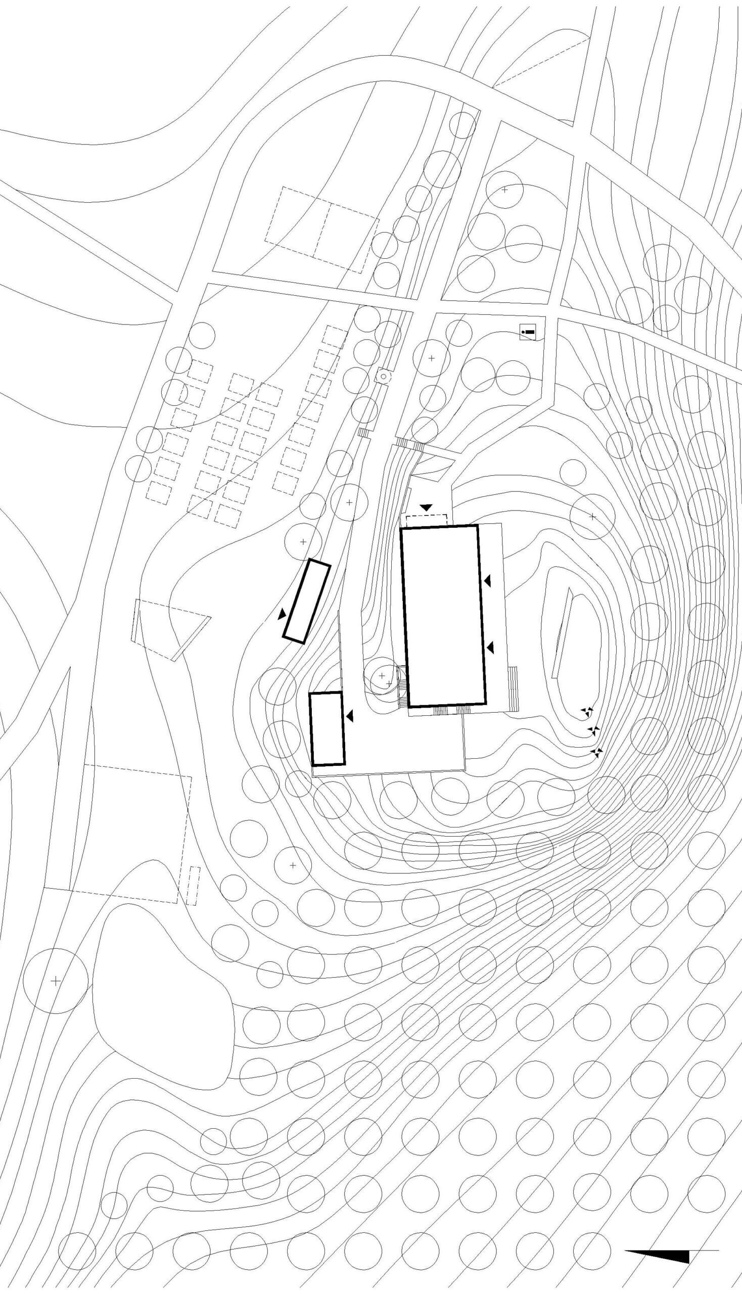 Propozycja konkursowa nowego schroniska składa się z trzech brył: głównego budynku schroniska oraz dwóch budynków pomocniczych – jednego obsługującego schronisko i drugiego dedykowanego polu namiotowemu. Obiekty rozmieszczone blisko siebie w układzie inspirowanym odizolowanymi kompleksami klasztornymi, tworzą przestrzeń „pomiędzy”, w której zaprojektowano niezakłócający otoczenia podjazd oraz plac gospodarczo-dostawczy. Główny budynek został odsunięty bardziej na północ względem dawnego schroniska, aby wykorzystać sam szczyt jako punkt widokowy i strefę rekreacyjną. Na szczycie, przed budynkiem, umieszczono 15-metrową, ławę z kłody z widokiem na dolinę i Tatry.