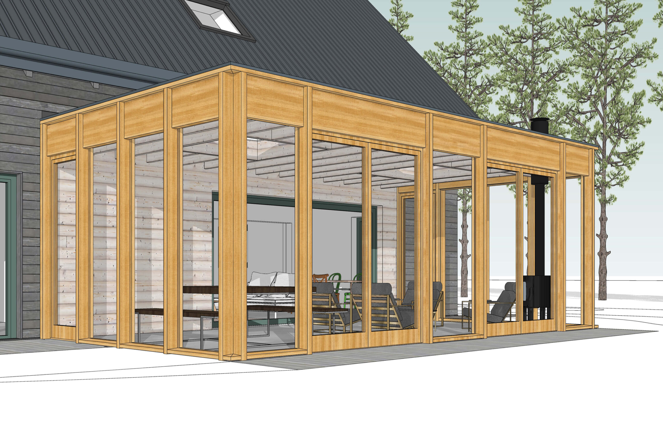 Oranżeria jest kontynuacją projektu w KAMIENIU. Po kilku latach Klienci zwrócili się do nas z prośbą o zaprojektowanie ogrodu zimowego w miejscu tarasu.