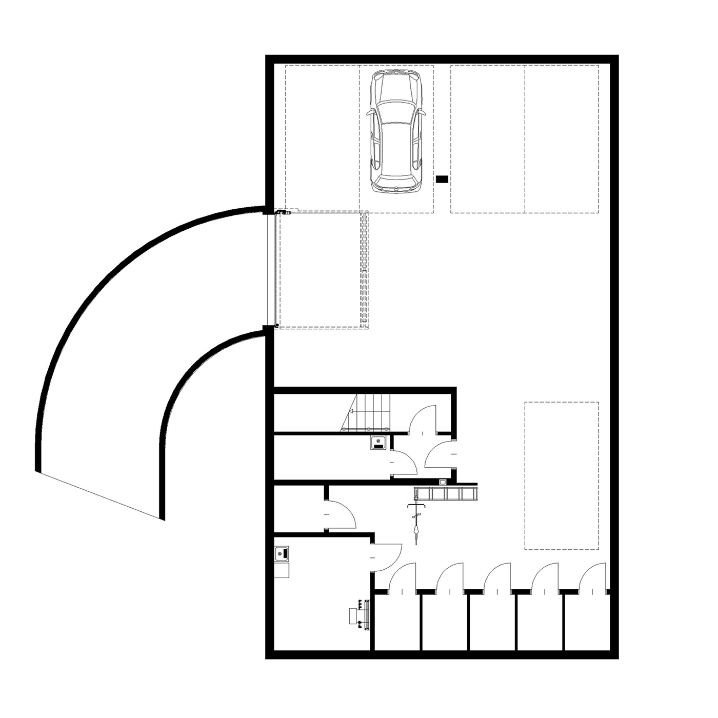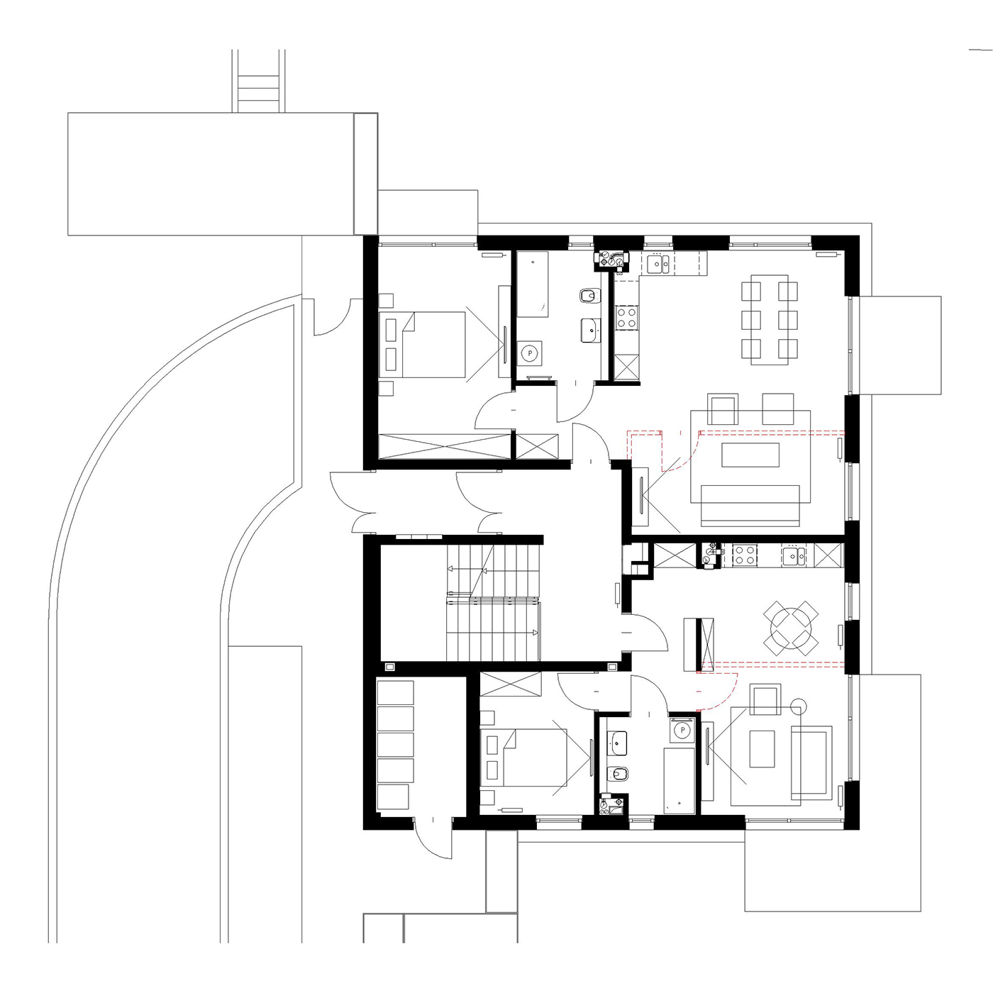 Projekt to niewielki budynek mieszkalny wielorodzinny, plomba miejska, zlokalizowany na działce zabudowanej wcześniej domem jednorodzinnym oraz wolnostojącym garażem. Istniejące budynki zostały przewidziane do rozbiórki. Nowy obiekt mieści pięć mieszkań oraz sześć miejsc parkingowych – pięć w garażu podziemnym i jedno miejsce naziemne.