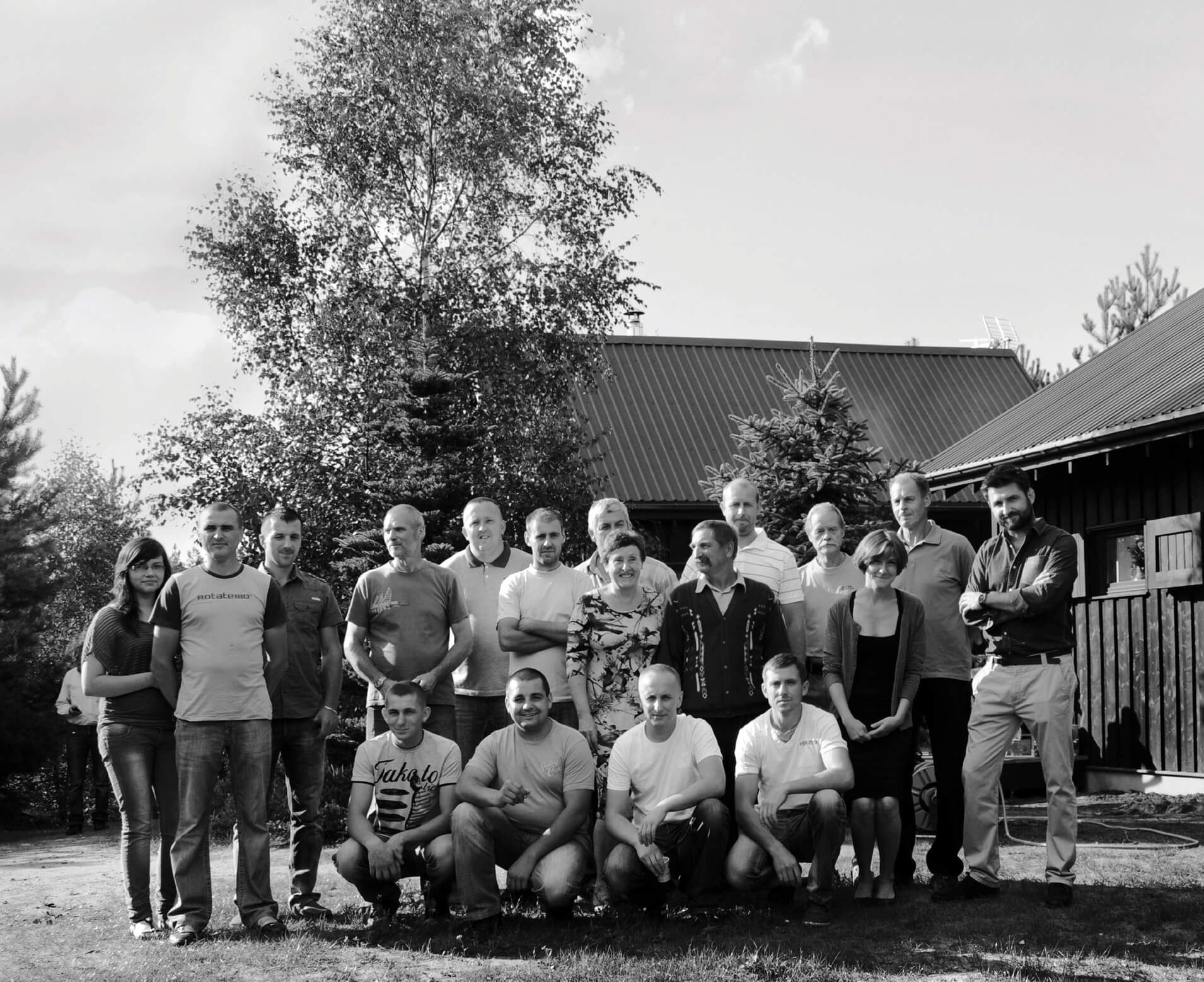 Jednym z największych wyzwań było zaprojektowanie budynków tak, aby nie wyrządzić szkody drzewom, które właściciele sadzili na działce od dekad. Stąd wybór konstrukcji drewnianej – czysto, szybko i bez użycia ciężkiego sprzętu.