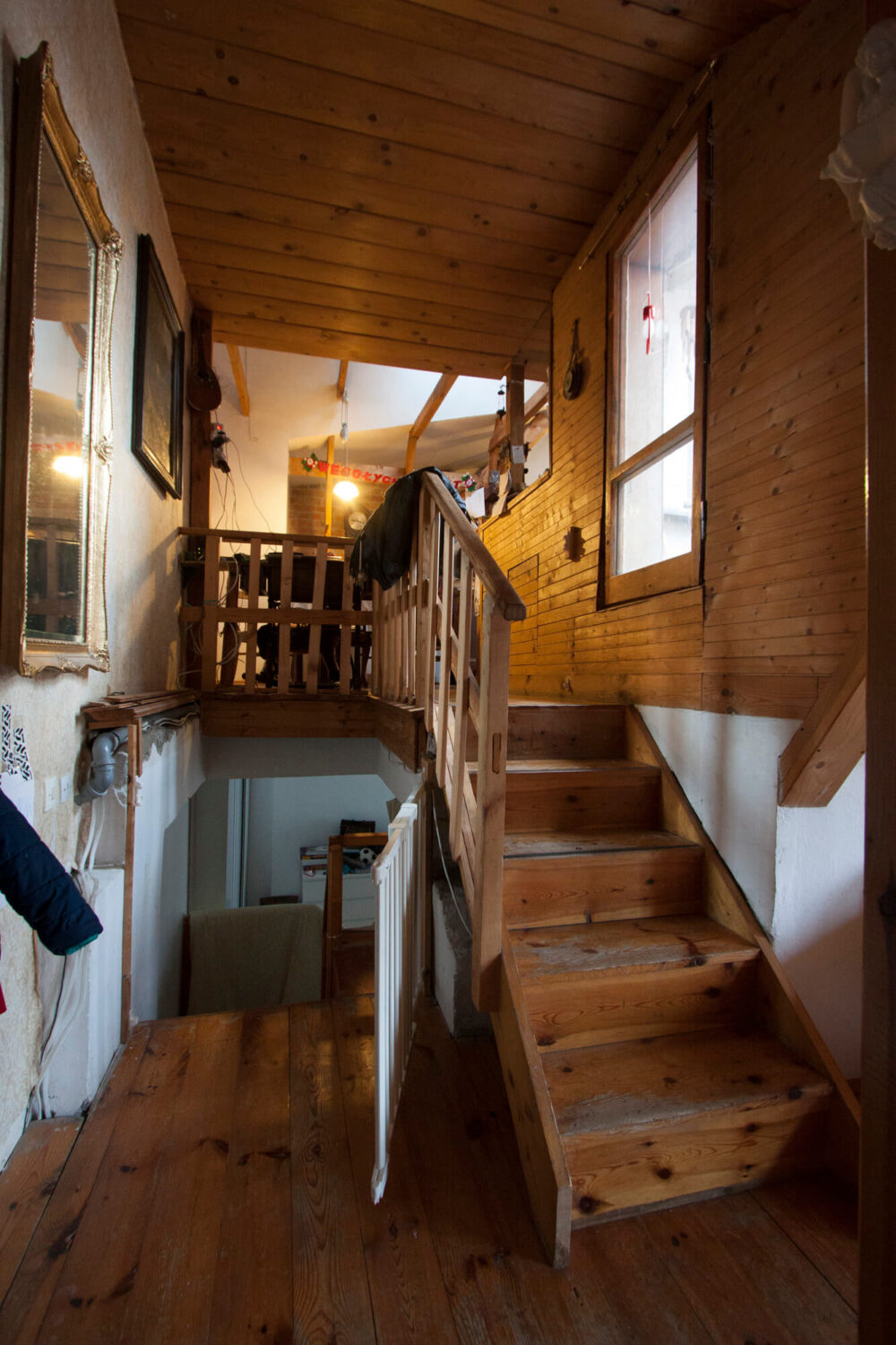 Jednym z nieoczekiwanych efektów realizacji okazała się możliwość obserwowania wędrówki słońca po białych ścianach wnętrza w godzinach popołudniowych. Usunięcie drewnianych okładzin ścian i sufitów oraz pomalowanie wnętrz na biało pozwoliło znacząco doświetlić przestrzenie. W połączeniu z naturalnym ciepłem drewna stworzyło to jasne, przytulne wnętrza.