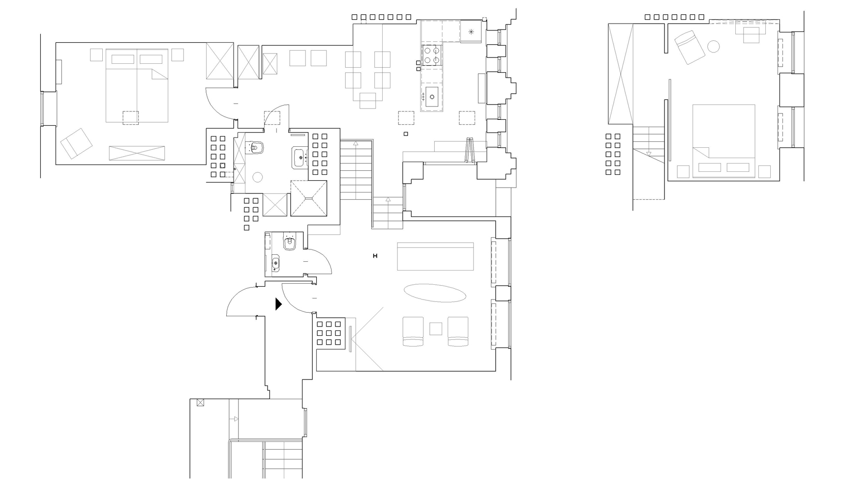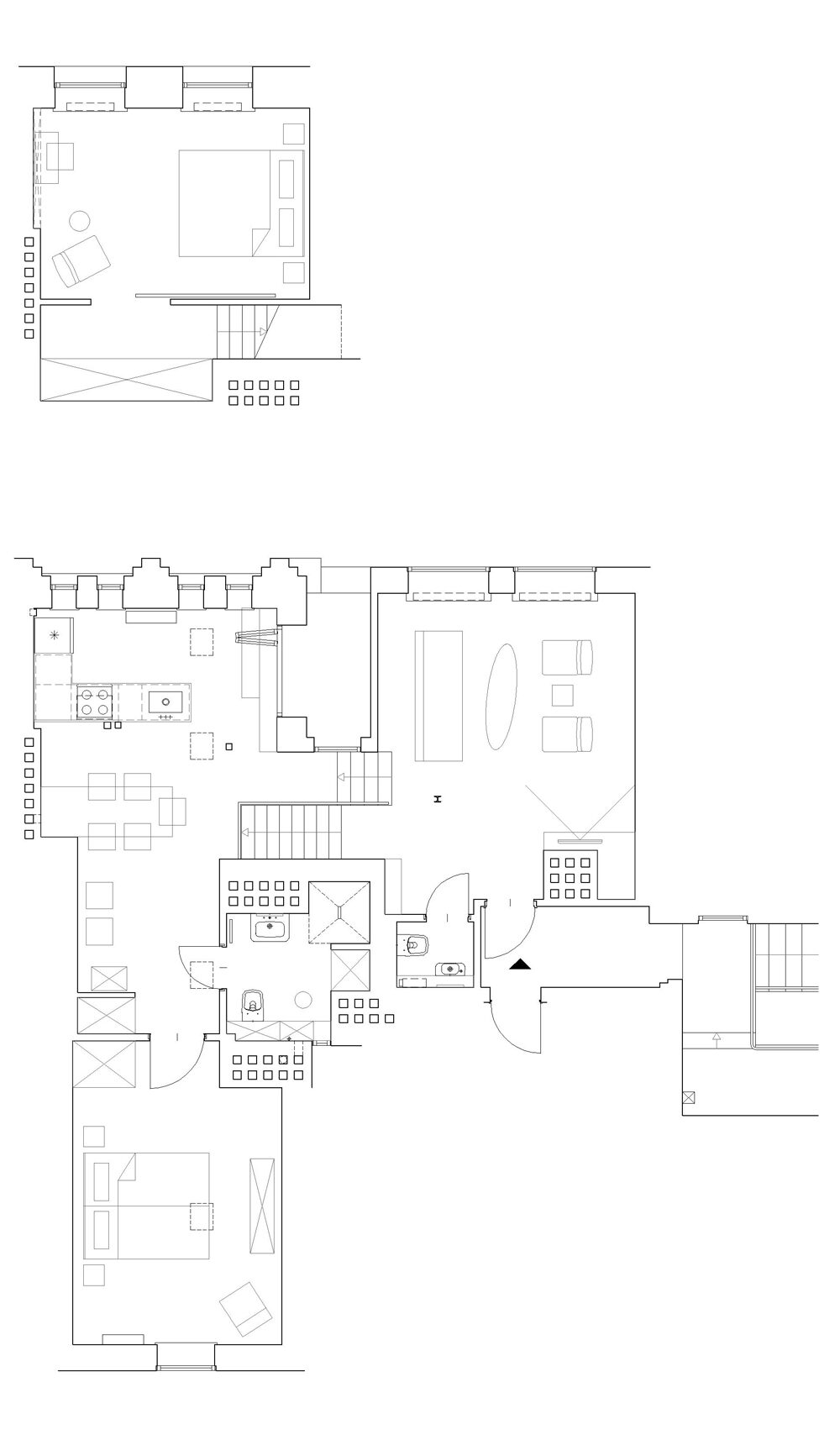 W 2017 roku inwestorzy postanowili się wyprowadzić i przygotować apartament do wynajmu krótkoterminowego. Proces modernizacji rozpoczął się od oczyszczenia wnętrz do ich podstawowej struktury. Sprawdzono konstrukcję budynku, ocieplono dach oraz wymieniono wszystkie instalacje. Udoskonalono układ funkcjonalny: dodano dodatkową toaletę w pobliżu głównego wejścia, wydzielono korytarz prowadzący do głównej sypialni na najniższym poziomie oraz zaprojektowano dużą zabudowę meblową przeznaczoną na rzeczy gości i środki eksploatacyjne. Niewielkie okno, którym wychodziło się na taras zastąpiono przeszklonymi drzwiami, co znacząco zwiększyło ilość światła dziennego i wzmocniło relację pomiędzy wnętrzem a przestrzenią zewnętrzną.