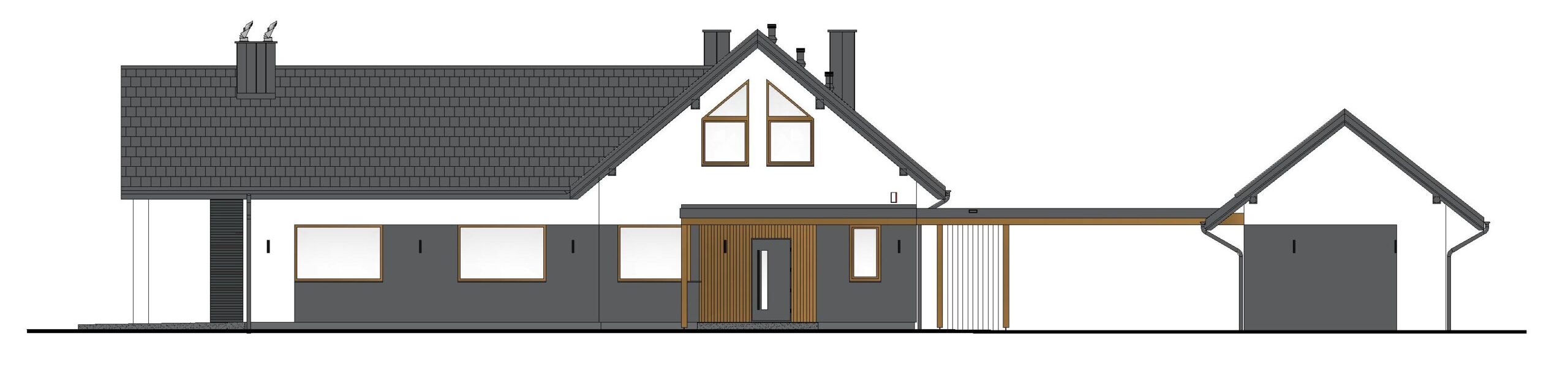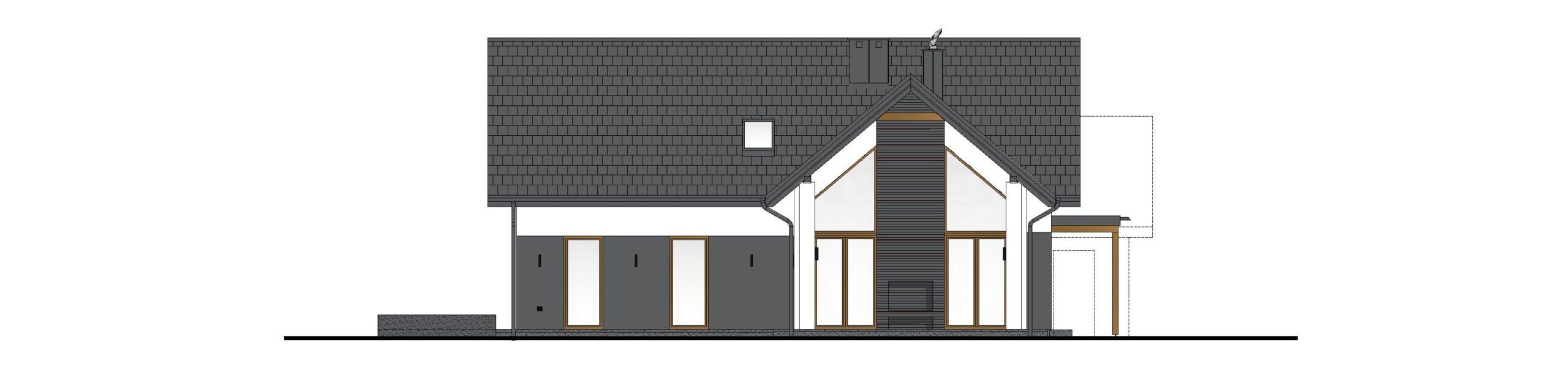 - zaprojektowanie zewnętrznego kominka na tarasie od strony szczytu.