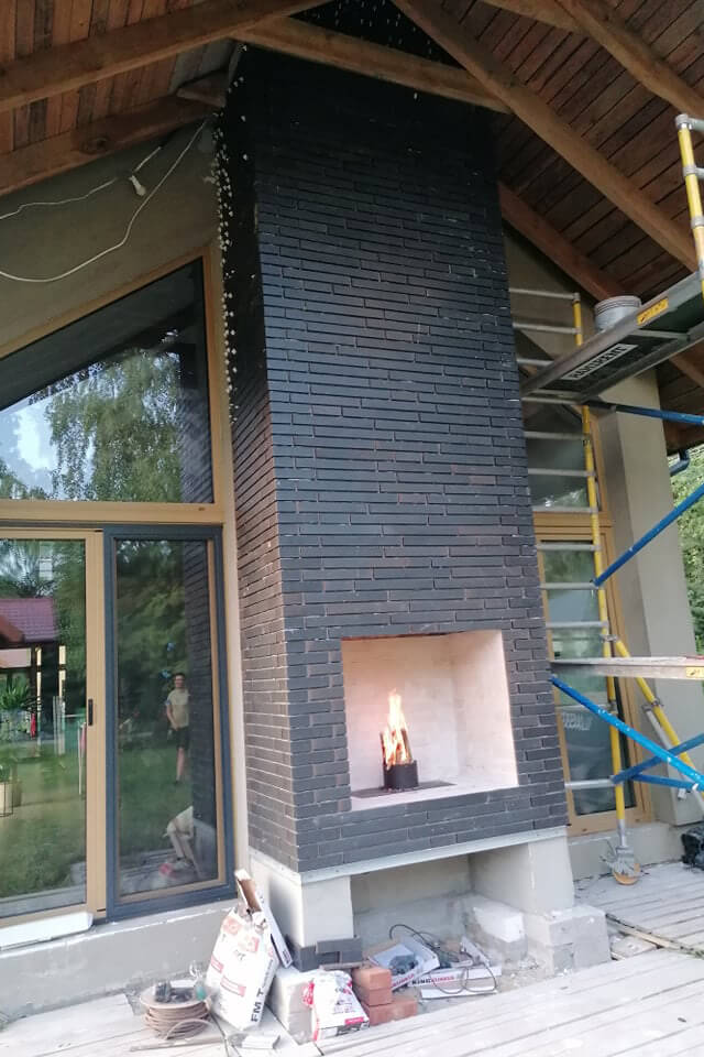 Inwestorzy realizują projekt etapami. Do tej pory powstała wiata oraz kominek zewnętrzny.